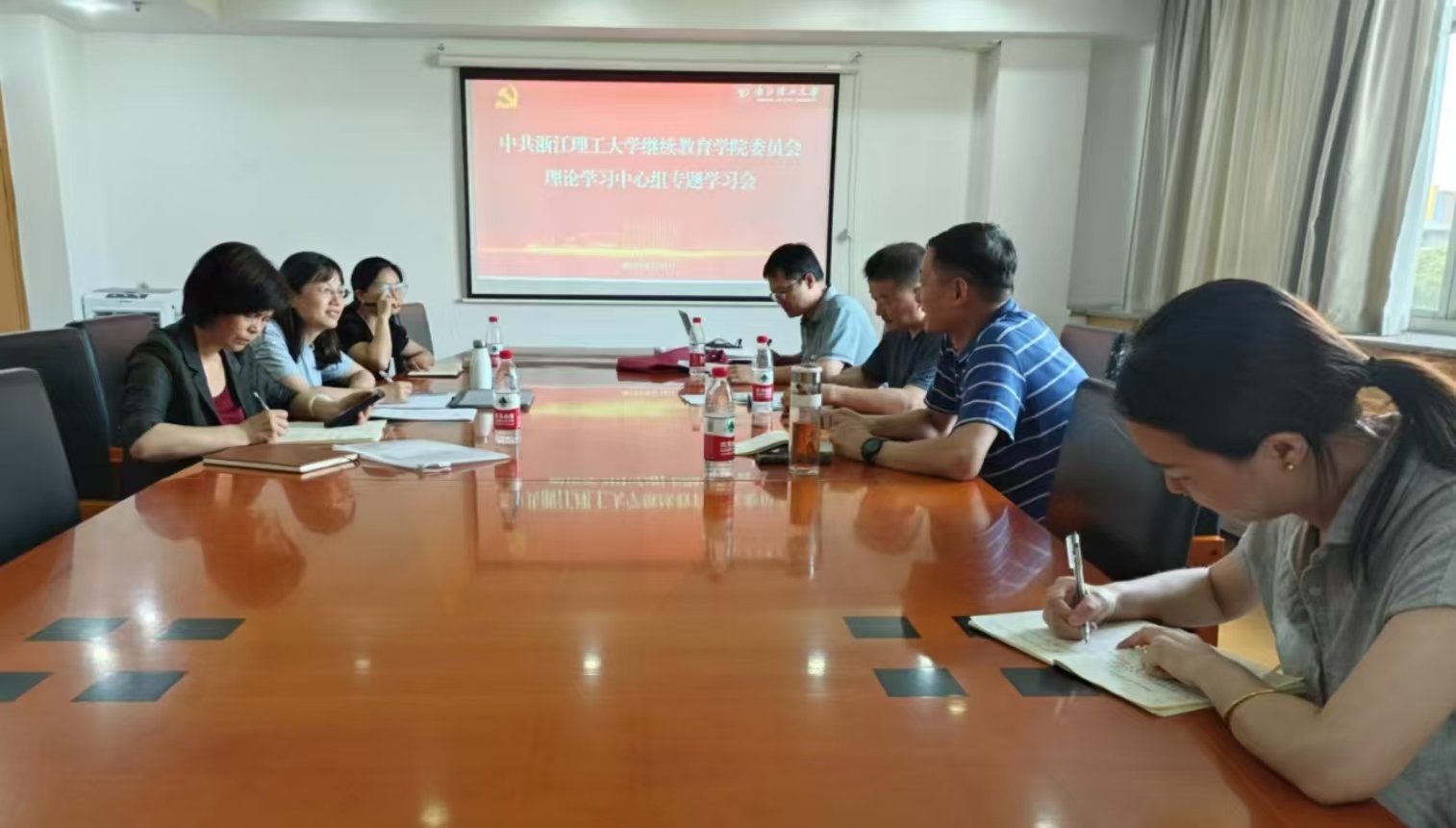 朱旭光传达习近平总书记在中共中央政治局第十六次集体学习时的讲话精神、习近平总书记对加强文化和自然遗产保护传承利用工作作出重要指示的精神、《求是》杂志发表习近平总书记重要文章《必须坚持自信自立》《实现建军一百年奋斗目标,开创国防和军队现代化新局面》等学习内容。他认为,坚持以文化人、文化育人,要深入挖掘百年校史文化元素,积极打造具有“浙理”标识、学院特色的文化元素。充分结合我院自考助学学生特点,坚持以人为本、德育为先,素质教育和终身教育相结合为导向,培养社会需要的应用性、职业性复合型人才。