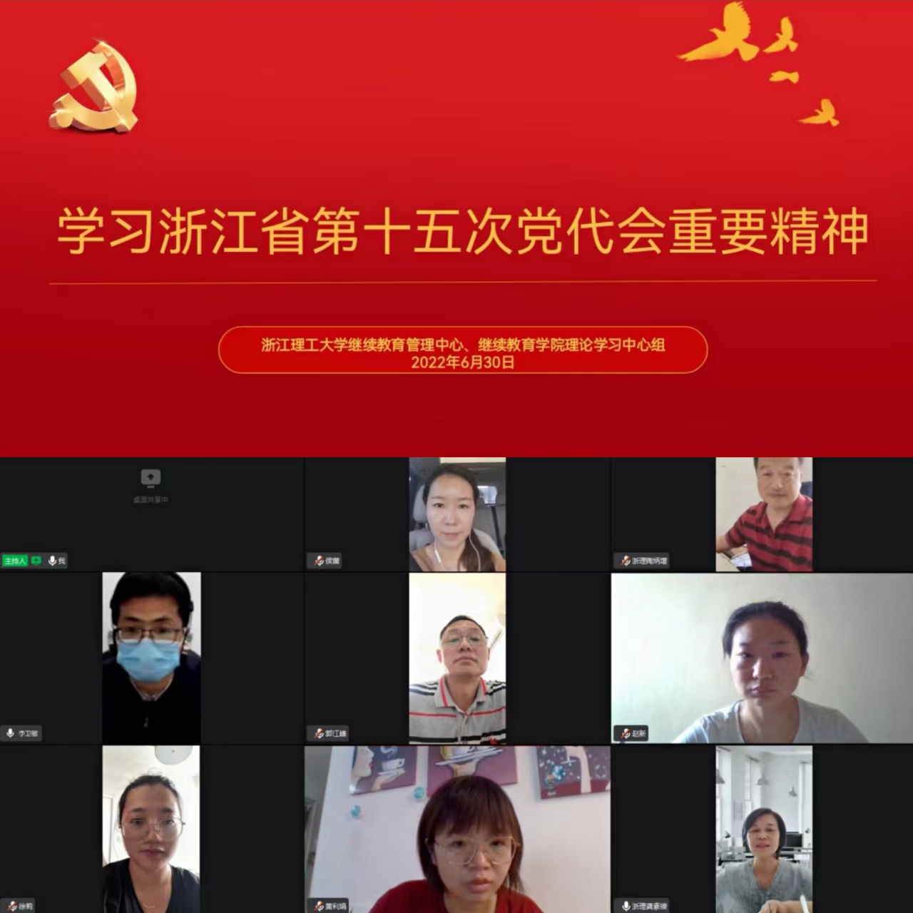 6月30日,党总支理论学习中心组召开钉钉线上专题学习会,专题传达学习学校党委理论学习中心组浙江省第十五次党代会精神专题学习会、《干在实处 勇立潮头——习近平浙江足迹》专题学习会的重要精神,专题领学《总体国家安全观学习纲要》主要内容、习近平总书记重要文章《正确认识和把握我国发展重大理论和实践问题》和浙江省第十五次党代会重要精神,以导学形式学习学校党员干部和教师政治理论学习指导书内容。党总支理论学习中心组成员参加学习。会议由党总支书记龚素瓅主持。