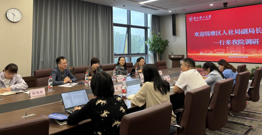 10月20日上午,钱塘区人社局副局长颜燕炯一行来我院调研。学院院长孙显水、班子成员陈艳、副院长赵新及相关科室参加了调研交流。