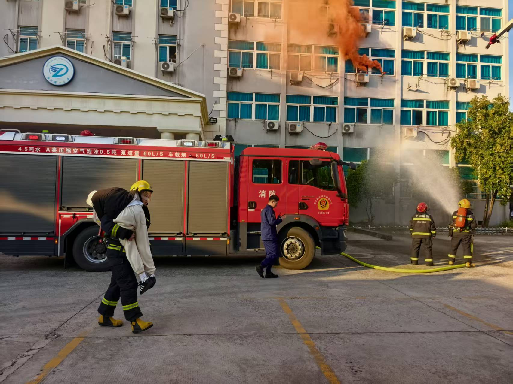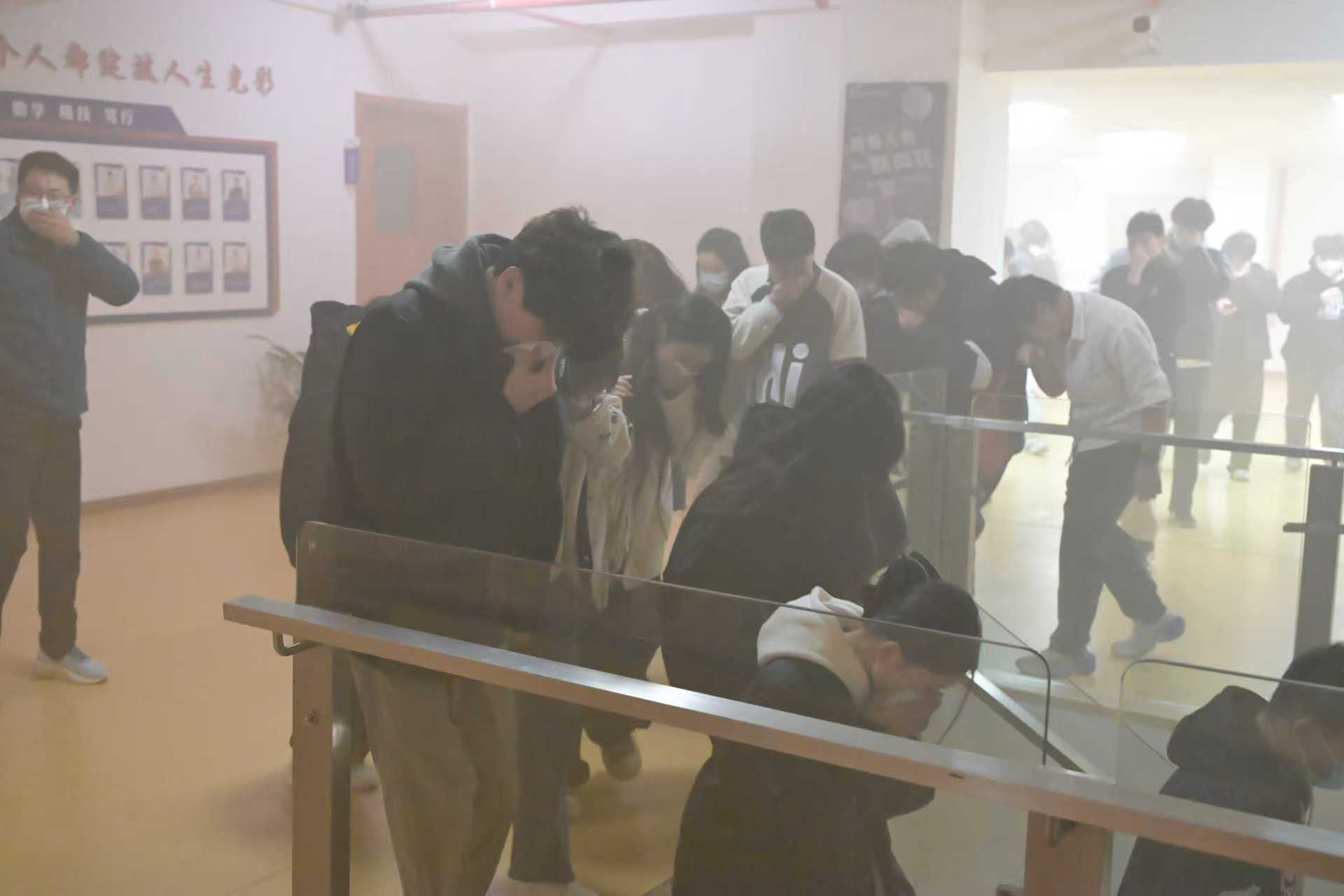 浓烟弥漫的楼道里,师生们弯腰低姿、用湿毛巾捂口鼻,沿安全通道快速有序疏散——这惊心动魄的一幕,正是我院消防演练中的实战场景。