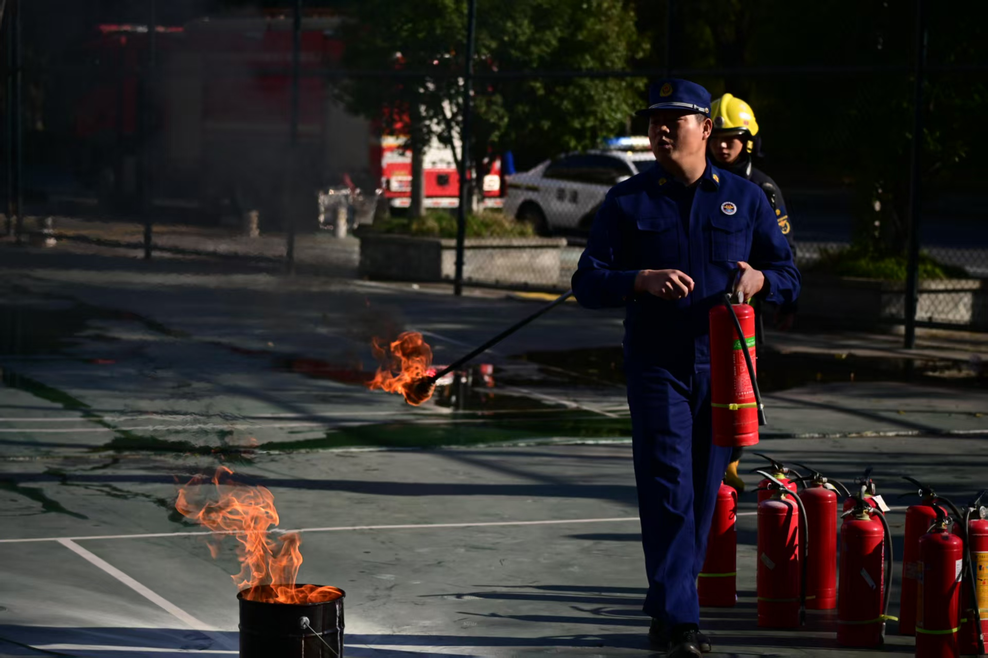 在演练现场,消防员结合校园常见火灾风险,重点讲解了火灾预防、隐患排查与初期扑救要点。师生们在消防员的专业指导下,有序开展了火灾逃生、灭火器操作及模拟救助等科目的训练,尤其对不同类型的灭火器适用场景及室内消防栓的正确使用进行了重点培训。