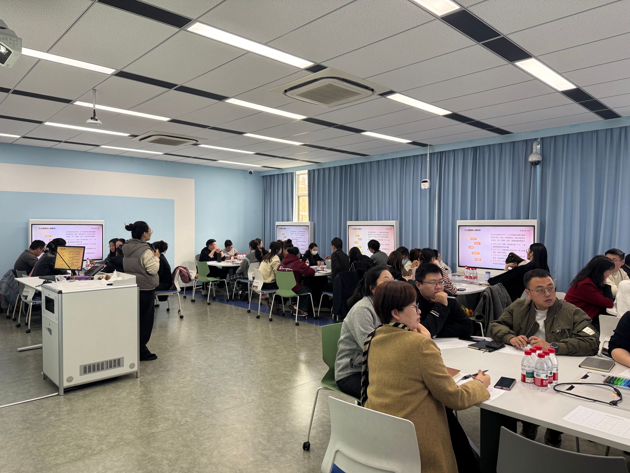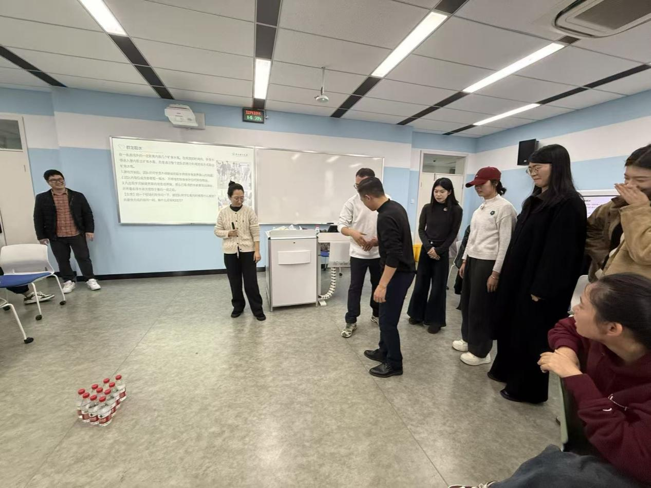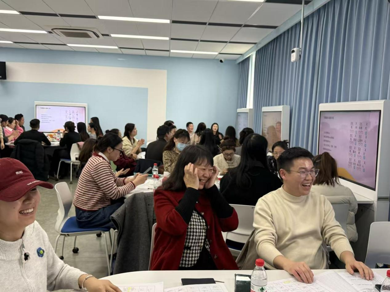 在《如何策划一场“走心”的团体心理辅导》中,虞老师通过“节奏破冰·自我介绍”、“寻人启事BINGO卡”等互动游戏,迅速拉近教师间的距离。随后的“团队取水”、“情有千千结”活动环节,教师们通过协作完成任务,亲身体验了团体心理辅导的实践技巧,为后续开展学生团辅工作积累经验。
