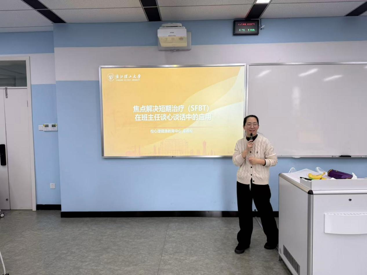 在《焦点解决短期治疗(SFBT)在班主任谈心谈话中的应用》的专题辅导中,虞老师结合具体案例,深入剖析谈心谈话的实用技巧,提出要以积极视角引导学生化解问题,以此赋能班主任掌握更高效的沟通方法。