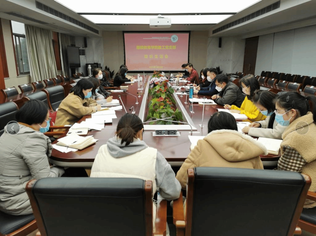 1月22日下午,我院教工党支部在下沙校区行政楼215会议室召开组织生活会和主题党日学习会。会议由教工党支部书记高建明主持,支部全体成员参加会议。