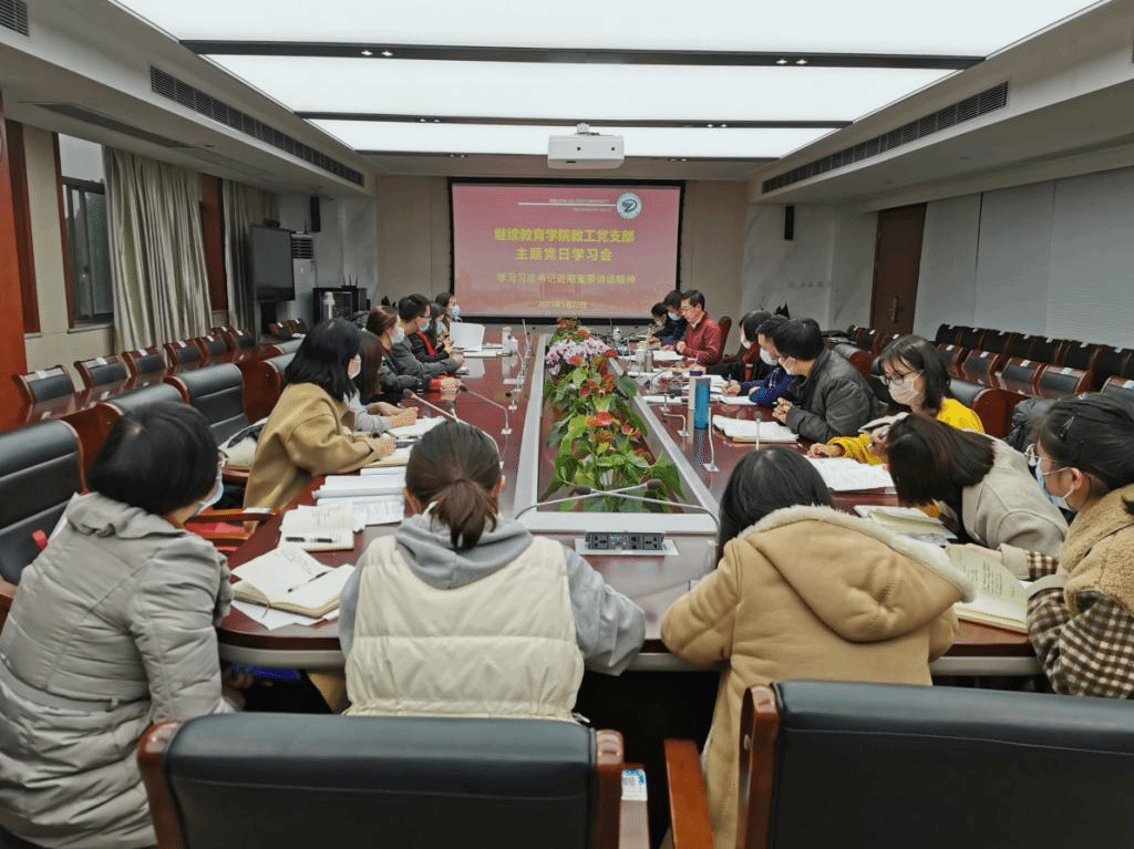 随后,高建明带领大家学习了习近平总书记近期重要讲话精神,重点学习了习近平总书记在省部级主要领导干部学习贯彻党的十九届五中全会精神专题研讨班开班式上和中共中央政治局民主生活会上的重要讲话精神。会议要求党员同志们深入学习领会习近平总书记重要讲话精神内涵,统一思想、提高站位、开阔视野,增强“四个意识”、坚定“四个自信”、做到“两个维护”,切实推动党中央关于“十四五”时期发展的重大决策部署落到实处,促进我校继续教育事业更高质量发展。