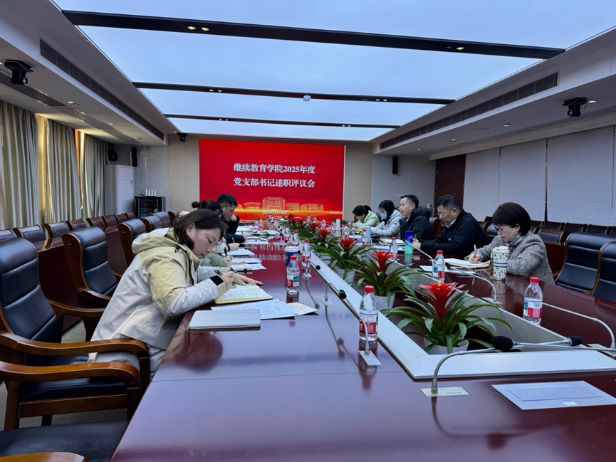 12月26日,继续教育学院党委在行政楼215会议室召开2025年度党支部书记述职评议会。学院党政领导班子成员出席会议。会议由学院党委书记王伟主持。